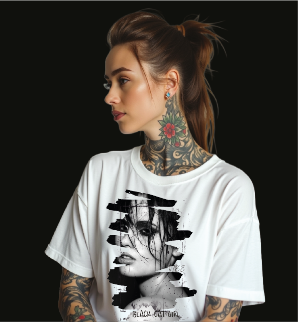 KOSZULKA BIAŁA UNISEX BLACK CAT GIRL