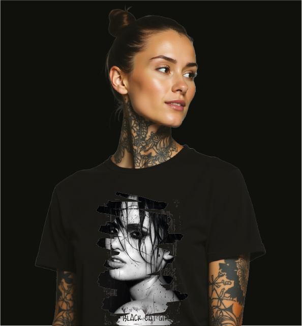 KOSZULKA CZARNA UNISEX BLACK CAT GIRL